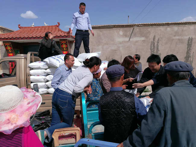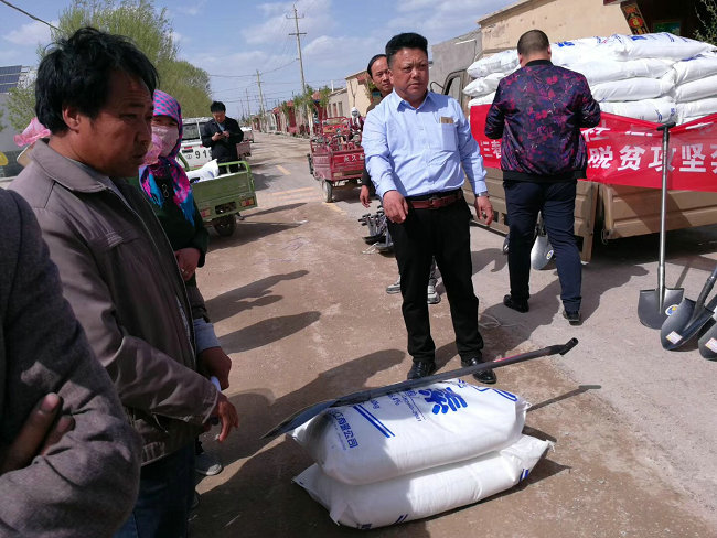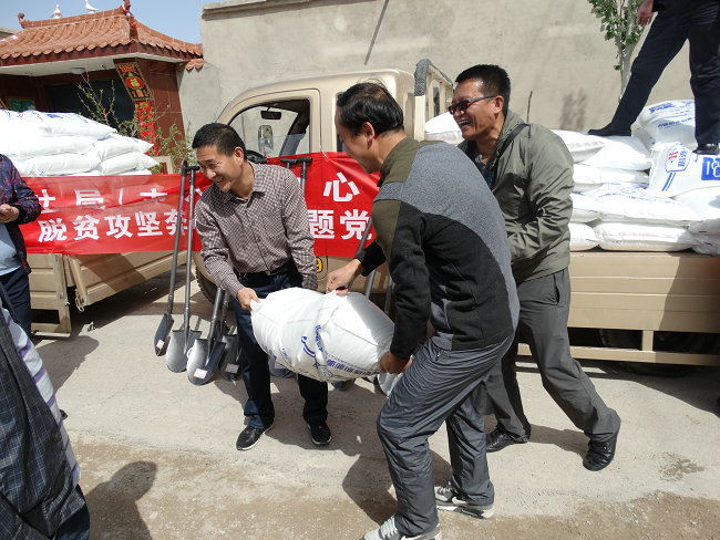 4月24日,市人社局(市人才中心)在精准扶贫帮扶联系点瓜州县广至乡洮砚村开展“三春生产送温暖,脱贫攻坚奔小康”主题党日活动,旨在联感情、办实事、促脱贫,通过座谈交流、捐赠物资、入户走访等方式,让贫困群众真切感受到党的温暖,进一步增强依靠自身努力脱贫致富、振兴乡村、实现全面小康的信心和决心。同时,教育和引导人社干部在脱贫攻坚任务中贴近群众、锤炼自身、改进作风,积极与洮砚村党支部、党员互促共建,群策群力,聚力攻坚,带头推动帮扶措施和责任落实见效。 市人社局党组书记、局长贾其全同志带领党组成员、副局长、市人力资源市场管理办(人才中心主任)苗旗新,局党组成员、纪检组长赵志俊和其他党员干部参加主题党日活动。 活动期间,市人社局(市人才中心)党员干部与乡、村、组干部开展了座谈交流,听取了乡、村两级2018年脱贫攻坚的思路、举措、重点工作推进情况以及村组干部、驻村帮扶队员对脱贫攻坚工作、帮扶工作的意见建议,并就下一步的帮扶任务和措施达成了共识。会后,到广至乡便民服务大厅实地查看了“大就业平台”,对广至乡就业系统运行、数据采集和精准脱贫劳动力培训、劳务输转到户到人工作开展了调研。组织机关干部为59户贫困户发放了118袋化肥,59把铁锨。党员干部深入各自帮扶联系户家中,询问了解生产生活情况,宣传扶贫惠农政策,指导群众发展增收产业,对年初因户制宜共同制定的“一户一策”帮扶措施进行了详细对接。
